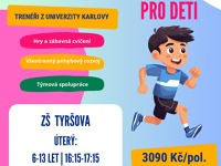 GYMNASTIKA PRO DĚTI je pro všechny kluky a holky z 1. stupně. Hlavní náplní je všeobecná sportovní příprava se zaměřením na gymnastiku. Naučíme se kotouly, hvězdy i stojky, zacvičíme si na nářadí a zahrajeme si spoustu her. Děti budou rovíjet koordinaci, rychlost, vytrvalost a flexibilitu. Trenér si vyzvedne děti před začátkem lekce v družině a po lekci odvede zpět, nebo děti předá rodičům. více